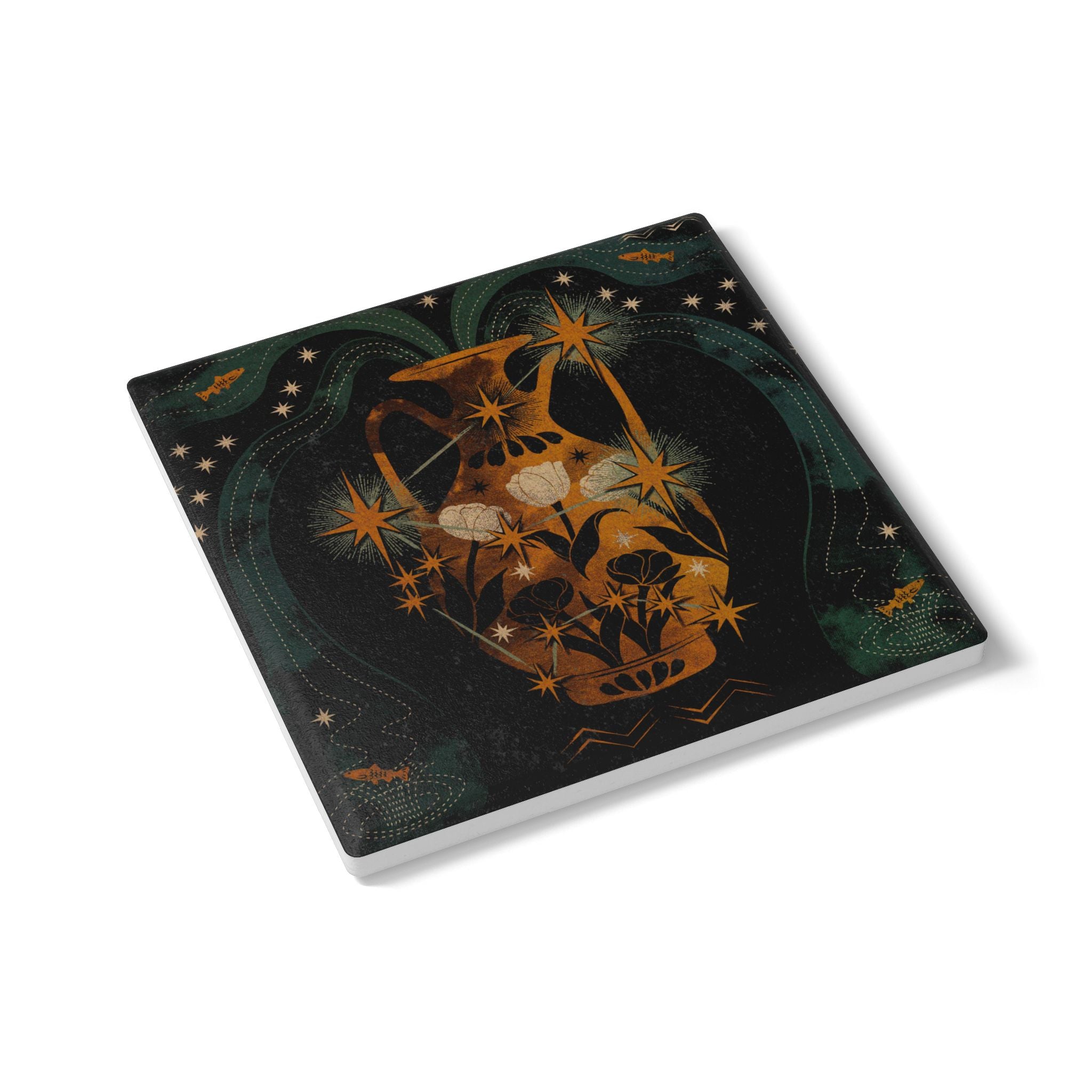 Ceramic Coaster, Aquarius Water Pitcher, Astrology Zodiac Home Decor