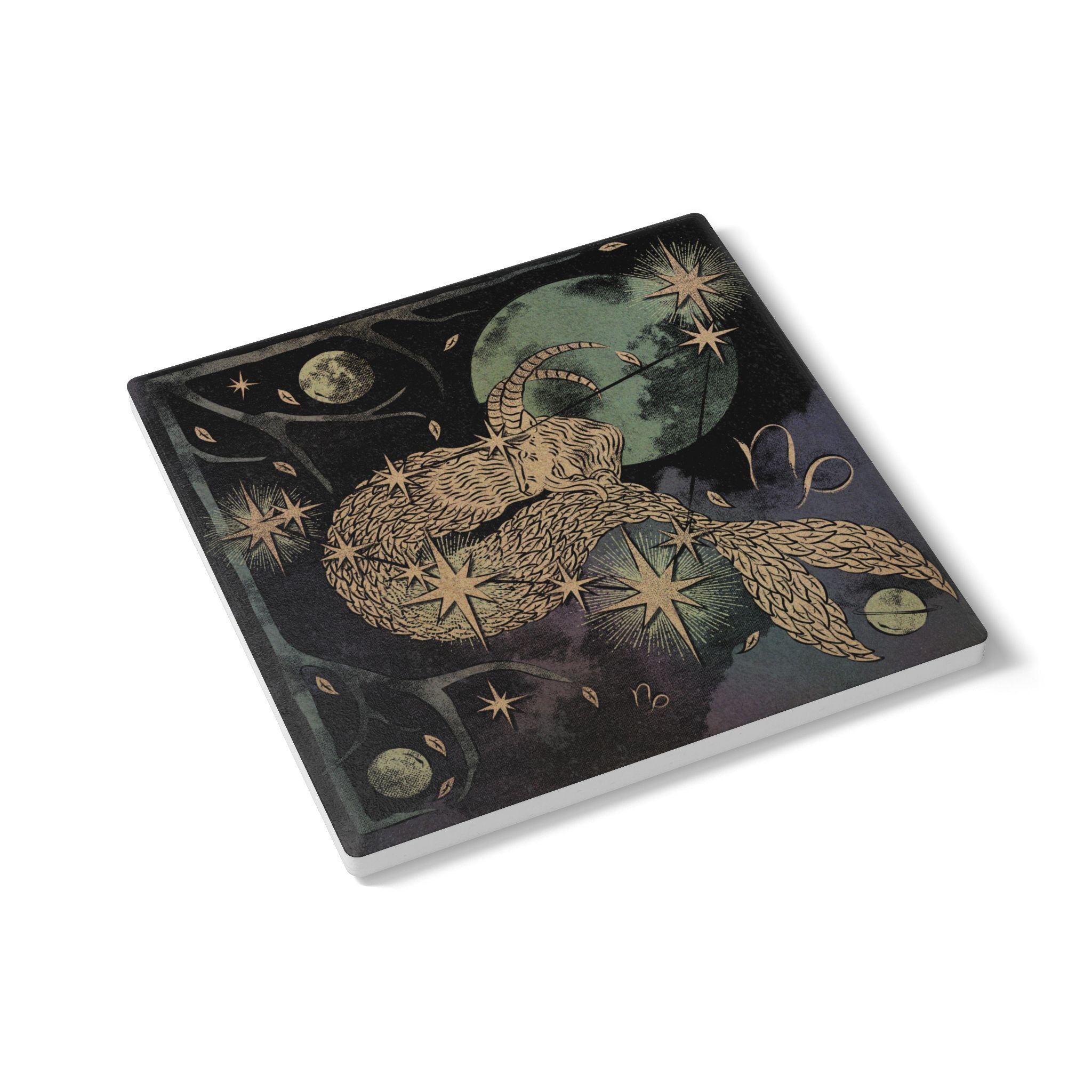 Ceramic Coaster, Celestial Capricorn Zodiac Astrology Horoscope Star Sign Home Decor